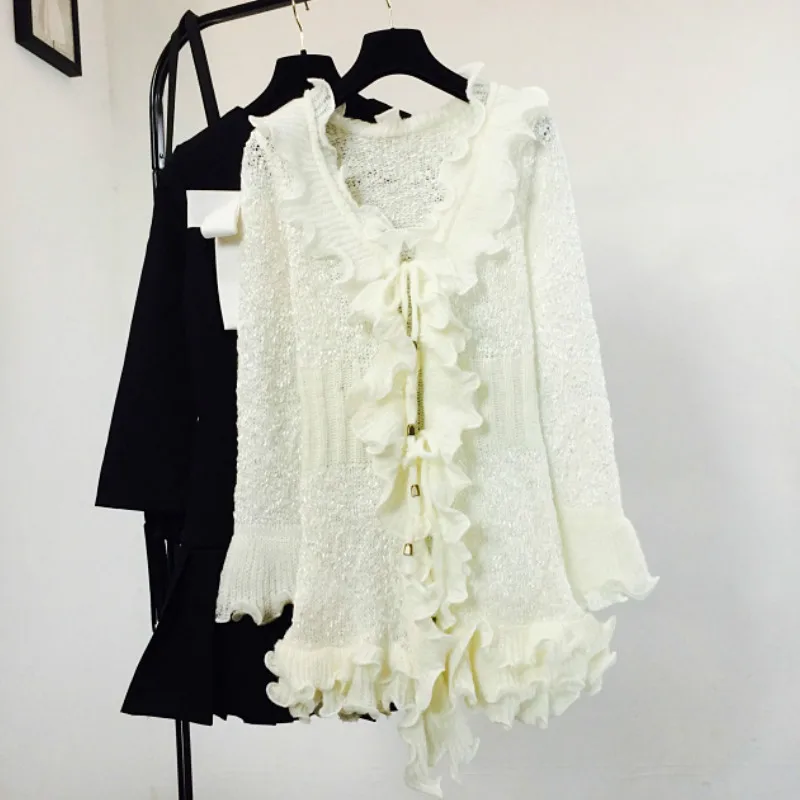 ГОРЯЧЕЙ продавать для дешевая цена Милый вязаный кардиган с объемными цветами и рюшами, с бантом, яркий Шелковый тонкий вязаный свитер на крючке, плиссированная куртка на шнур.... Стоимость Низкий и варианты из разнообразия магазинов в мире.функции продукт