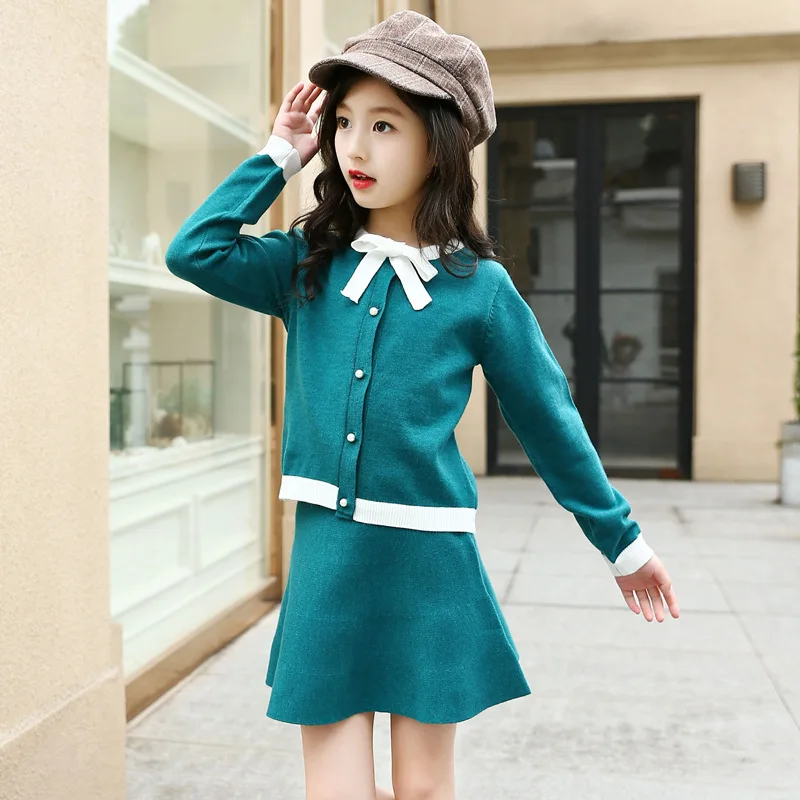 ГОРЯЧЕЙ продавать для самая низкая цена Детские комплекты одежды для девочек 2018 Демисезонный детские вязаные пальто + юбка комплект из 2 предметов модная одежда для девочек наряды .... Цена продажи Низкий и варианты из разнообразия магазинов в мире.функции товара